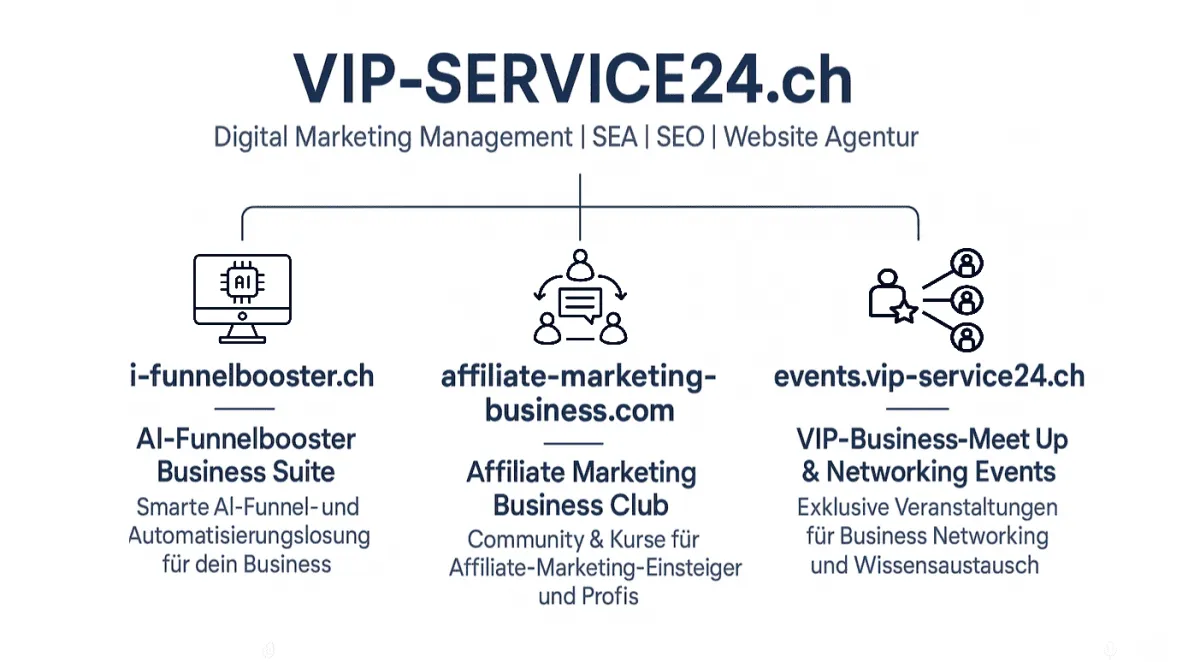 VIP-Service24.ch ist deine zentrale Anlaufstelle für professionelle Digital Marketing Lösungen in den Bereichen SEA, SEO, Social-Media, Website Erstellung und Business Automatisierung.